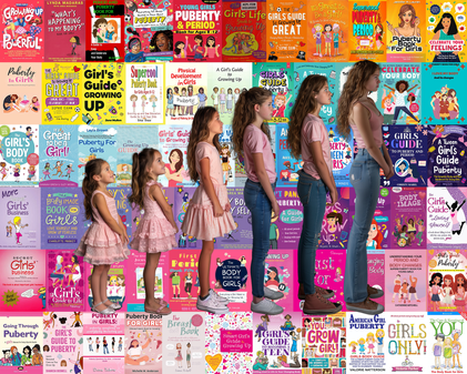 "Growing Pains": This piece traces the journey of puberty through a sequence of figures, each representing the same girl at different stages. It contrasts idealized portrayals of puberty with the harsh realities, highlighting the loss of innocence and the emotional and psychological challenges girls face as they mature.